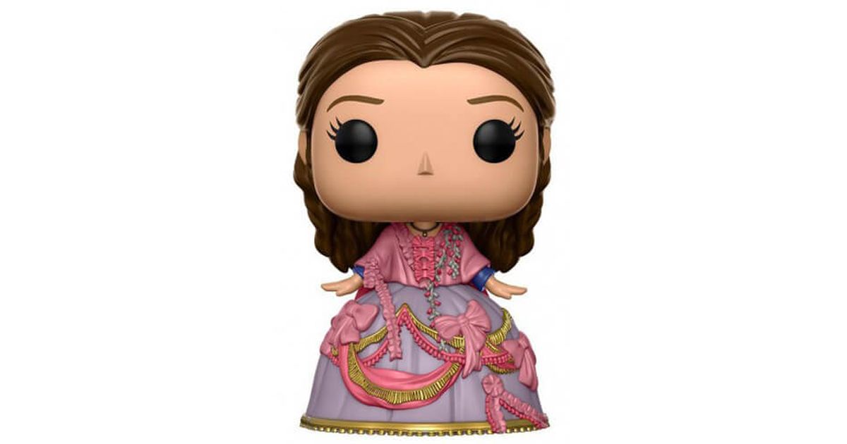 Belle is one of the two main characters in Disney's animated film, Beauty and the Beast. It is a film inspired by an eponymous tale from the 18th century. This tale tells the story of a young woman, Belle, who goes to a prince's castle to free her father Maurice who has been imprisoned by the Beast. At the beginning of the story, on a winter evening, a beggar woman comes to the castle to ask the young prince for hospitality in exchange for a rose. The prince sneered and then chased away this old woman with a miserable appearance. The old woman explained to the prince that true beauty comes from the heart, but the prince pushed her away a second time. Then the old woman turned into an enchanting creator and put a curse on the prince. She turned him into a hideous monster, cast a spell on the castle and all the inhabitants by turning them into various objects.To lift the curse, the Beast must learn to love and be loved in return before the last petal of the magical flower of the enchanted creature falls. One day, Belle arrives at the castle and offers to become a servant in exchange for the freedom of her father, captured by the Beast.Belle is a beautiful and intelligent young woman, who lives with her father Maurice in a charming and quiet village. She dreams of adventures and great love and is often found immersed in books. When she arrives at the castle, the beginnings are difficult with the Beast, but they find common ground in reading, and gradually Belle falls in love with the Beast.For this exclusive figurine, Funko represents Belle in her custom-made outfit created for her by the housekeeper transformed into a wardrobe. The created dress is rather loaded, her very wide skirt is purple with many accessories such as big pink bows, golden bangs and ribbons put on top of the skirt. Belle is covered with pink fabric, several small bows, small flowers. At the level of the head, we find her brown hair styled backwards. Her posture is full of grace, with her hands above the skirt. A lovely figurine to have in his collection!