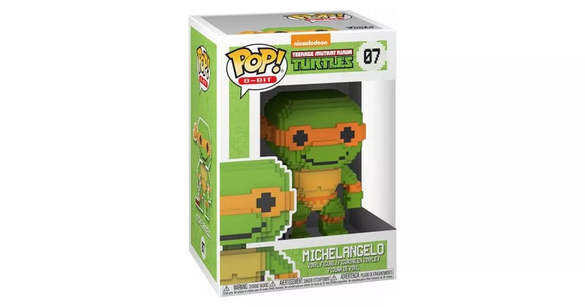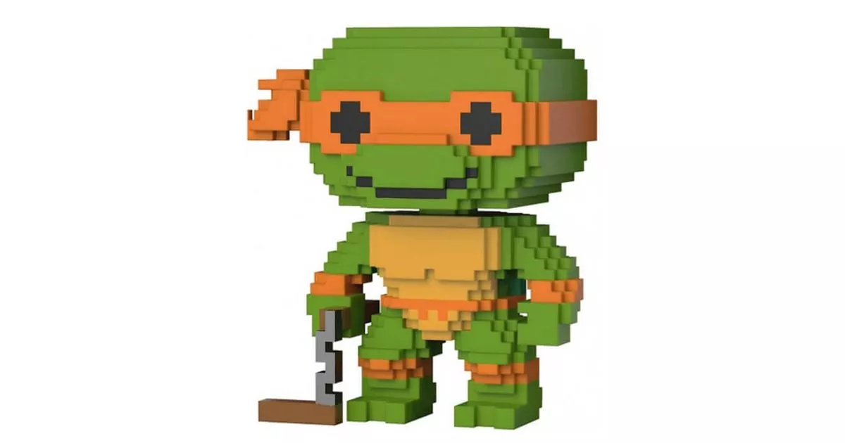 Michelangelo is the Orange Ninja Turtle. He loves comic books and pizza, practices board sports such as skateboarding or surfing and underneath, takes a clever pleasure in teasing his brothers. More joking and easily attracted by trivial pleasures, Michelangelo often annoys Leonardo who tries to reframe him...The qualities of this ninja are based on his mastery of balance and speed. He fights while handling two nunchakus with a precision and a remarkable force.Splinter gave him the name Michelangelo in homage to the Renaissance painter Michelangelo. Just like his brothers, named after Italian artists of the time.Funko represented Michelangelo on a POP 8 Bit figurine from the POP Ninja Turtles series. We find the character with the orange headband in a very successful "pixelized" version. For the occasion, Michelangelo's protective gear and belt are also colored in orange.Only accessory (apart from his headband), Michelangelo holds in his hand his nunchaku, one of the sticks of which falls on the ground. In spite of the "8 bits" style of the POP, one recognizes perfectly the nunchaku with its chain and its two sticks, as well as the profile of the Ninja Turtle!