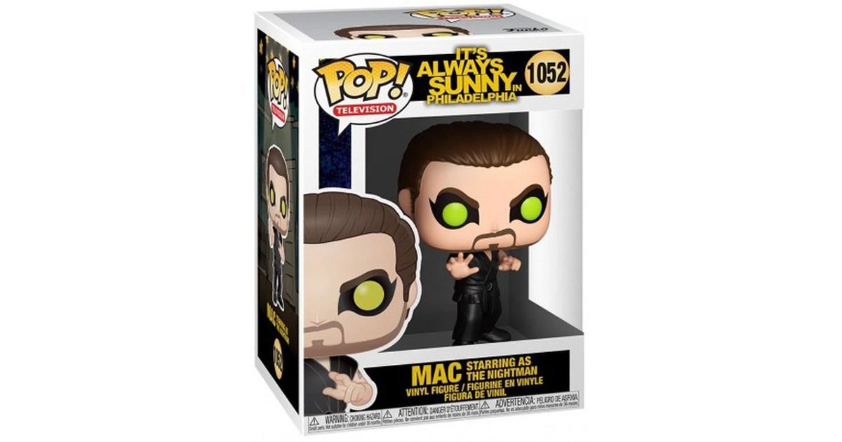Best friend of Charlie, although, like all the members of Paddy's Pub, the two of them multiply the low blows independently of the friendship they feel, Mac will obviously have been able to obtain a role of choice in the musical A Nightman Cometh. This musical, written by Charlie, tells the story of his childhood in an allegorical way, with a troll, a princess, and characters supposed to represent what we can assume is his Uncle Jack who came to see him at night when he was young.Very dark but also very funny, the episode of the Nightman Cometh will remain legendary for the fans of the series. The musical has even benefited from a live theater adaptation with the original actors of the series.Mac, short for Ronald MacDonald of his real name, became the figure of the antagonist in the musical. A role that he particularly loves and that he will interpret .... in his own way. Indeed, Mac is a big kid in his thirties. The fact that he takes himself seriously with each of his antics only makes him all the more amusing, in spite of himself, as always.Thinking he's a pro at fighting - which he certainly isn't - he loves to show off his karate techniques... which he doesn't master. Also, since the Dayman's song includes the mention of "Master of Karate", Mac will feel obliged - because he wants to - to reinterpret the role in his own way. This, without telling Charlie, of course. Together with the other members of the Paddy's Gang, he will then contribute to sabotaging the musical in front of everyone, making it all the more hilarious.The role of the Nightman - from which the title of the play A Nightman Cometh is taken - is supposed to represent the dark side that Charlie must have experienced in his early youth. In view of the context and a second reading, one comes to wonder if the role of the Nightman is not an allegorical figure of a molester. A few awkward and deliberately misinterpreted scenes tend to suggest that this musical is indeed based on a misappropriation of a minor. Particularly sleazy humor as only the It's Always Sunny in Philadelphia series can write.The Funko POP figure of Mac performing Nightman depicts him with all the ridiculous trappings that Mac wore on stage at the time. With an all-black karate dogi, his costume represents him as the antagonist of the play. Pushing the vice of the accessories very far, Mac will have made up in an excessive way. Indeed, the Funko POP of Mac playing Nightman has his eyes painted to resemble those of a cat, even wearing bright green lenses. This is most likely a reference to the musical Cat's.Also, the POP figure of Mac playing Nightman, as you might expect, strikes a martial karateka pose. The character, in fact, will benefit from a final - and very poorly choreographed - fight scene where he is defeated by the Dayman. The figure of Mac playing Nightman then takes a grotesque karate pose as Mac is so used to do before being beaten.