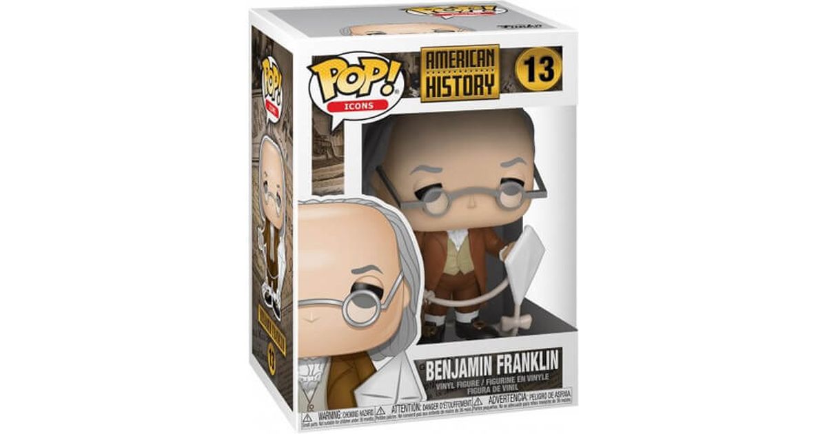 Benjamin Franklin is one of the founding fathers of the United States, a contributor to the Declaration of Independence alongside Thomas Jefferson, a talented diplomat and inventor of genius, he contributed enormously to the development of the United States in various disciplines.One might think that Benjamin Franklin had many lives, but the man whose face now marks the $100 bills has instead had a full life as a curious self-taught man. Born into a modest family, he managed to make a fortune as a printer before launching himself late into political life where he became the US ambassador to France. At the same time, Benjamin Franklin distinguished himself as an inventor and scientist, and is notably credited with the invention of the lightning conductor, one of the first examples of which was installed in his own house! He also pushed his research in the meteorological field, invented bifocals and mapped the Gulf Stream!It is this "inventor of genius" side that Funko wanted to retain by proposing a Benjamin Franklin's POP figurine in the American History collection and by making it appear alongside other characters and icons of America as with George Washington's POP or Uncle Sam's figurine!Indeed, Funko makes a beautiful nod to the life of Benjamin Franklin by representing him in full realization of what has been called the kite experience. Franklin wanted to prove that lightning is simply electric shocks, so Franklin conducted an experiment with a kite to which a metal key was attached. On Benjamin Franklin's POP, we find him holding his kite in his hands and getting ready to take off for his experiment!Franklin's POP is faithful to the character while the man is already relatively old. We find a character with a bald forehead although his gray hair is relatively long. He wears a full suit with a white shirt, a small beige vest, a brown jacket and brown pants showing his high white socks.Finally, on this POP figurine, Benjamin Franklin has frowning eyebrows, a sheepish look and wears his small round glasses.