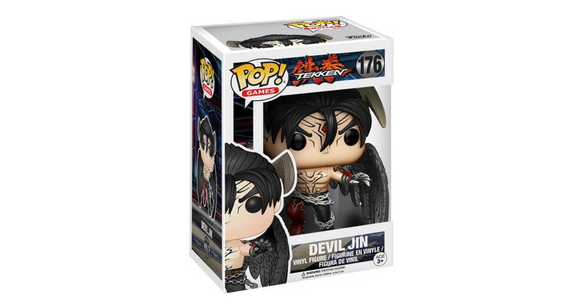 Jin Kazama is one of the fighters taking part in the Tekken Iron Fist Tournament. This character, who only appears in Tekken 3, is of particular importance since he is the grandson of Heihachi Mishima, the fallen organizer of the first tournament.If he decides to participate in the tournament, it's because Jin Kazama wants to avenge his mother's death. But we learn that Jin is possessed by the demonic gene (transmitted by his father Kazuya Mishima who had made a pact with the devil). The story becomes more complicated for him, because he blames his father for the gene while his grandfather, Heihachi Mishima, covets the demonic gene to become even stronger... It is in this complexity that Jin Kazama imposes himself as one of the main characters of Tekken (if not the main one?), and one of the strongest "villains" when he transforms into "Devil Jin".So Jin Kazama asks the question: is he good and fighting to restore his honor, or will he sink to the dark side and try to destroy the world? The character, always at the center of Tekken 7, still has many surprises in store for his fans...With this POP action figure of Kin Kazama, Funko pays tribute to the fighter by representing him as Devil Jin. The POP is beautiful since we can find many details starting with the black wings on Jin's back. On his face and torso are represented the marks of evil, he has two horns symbolizing the devil and his outfit is particularly dark/gothic. Indeed, his pants are dyed black and red and he has a chain wrapped around his waist and left leg. Finally, Jin is transformed up to his fingertips since he has claws!This figurine makes a perfect echo to Jin Kazama's "nice" POP. On both of them, you can recognize the young face of the fighter and his haircut with a strand that falls out, but the two POPs show both sides of the character perfectly, with a special mention to the Devil Jin figurine!