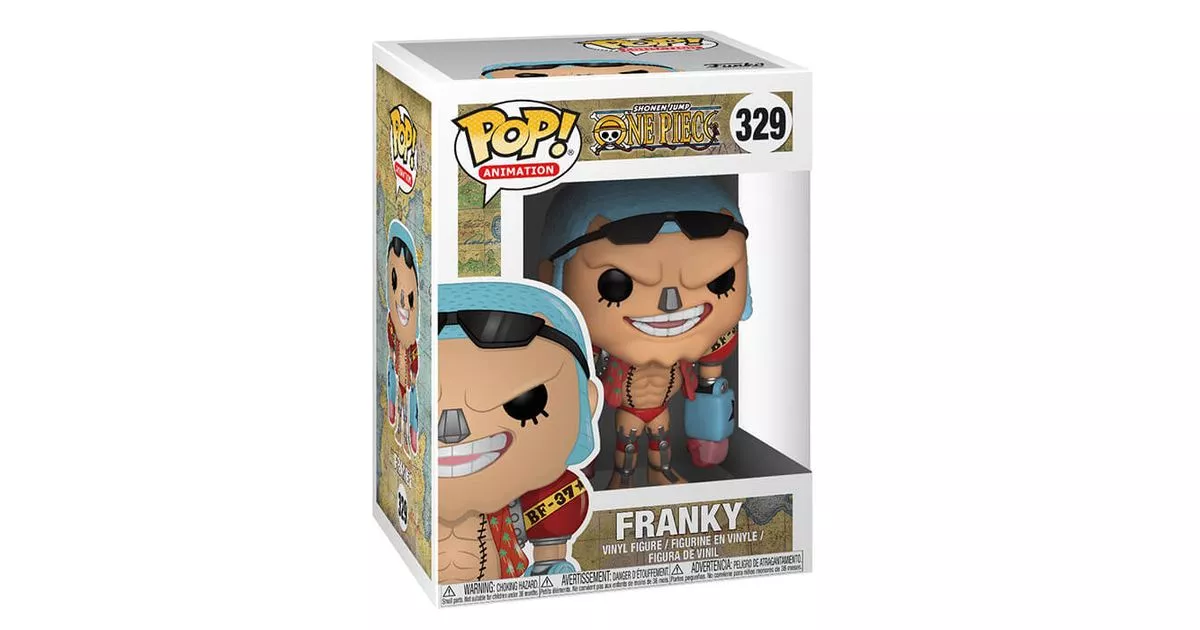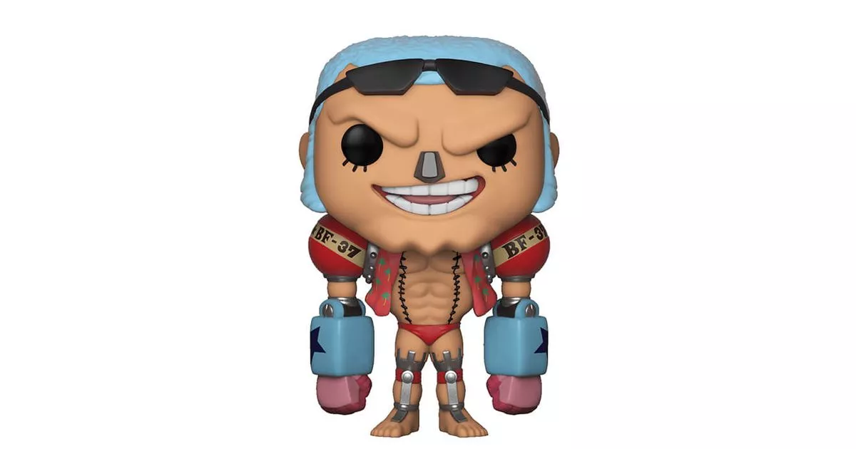 Franky, whose real name is Cutty Flam, is the cyborg carpenter of the Straw Hat Crew, he is one of the best naval carpenters in the world. At the request of his family, Franky will join Luffy and his companions to fulfil his dream: to cross the world on board one of his boats. He is the eighth member of L'Équipage du Chapeau de Paille and his current bonus reaches 94,000,000 berrys. Franky is one of the crew members who have not eaten any demon fruit. However, he is a cyborg which gives him a whole arsenal of weapons at his disposal on almost every part of his body. In addition, his body is hard as steel so he is invulnerable to bullets, but his back is vulnerable because he has made his own modifications in his body, his back remains without real protection. It has a cola reservoir in its abdomen, which it can open and renew as its energy reserves are depleted. He is a big-hearted, sensitive and compassionate person behind his tough looks and imposing physique. He has his own laughter, like almost all the characters in the One piece saga: "Gahahahahaha.Through this Pop! figurine, Funko represents the talented carpenter of the Straw Hat Crew, Franky. We see Franky lightly dressed as usual, with a red unbuttoned shirt with palm trees as a motif showing his imposing body and his famous red swim trunks. This figurine highlights the stature of the carpenter with his huge arms indeed, we can see 2 big red balls in the place of his shoulders and blue cubic forearms. Moreover, he also has an atypical head with very short blue hair, a chin with three dimples, a metal nose and black sunglasses that he does not wear.
