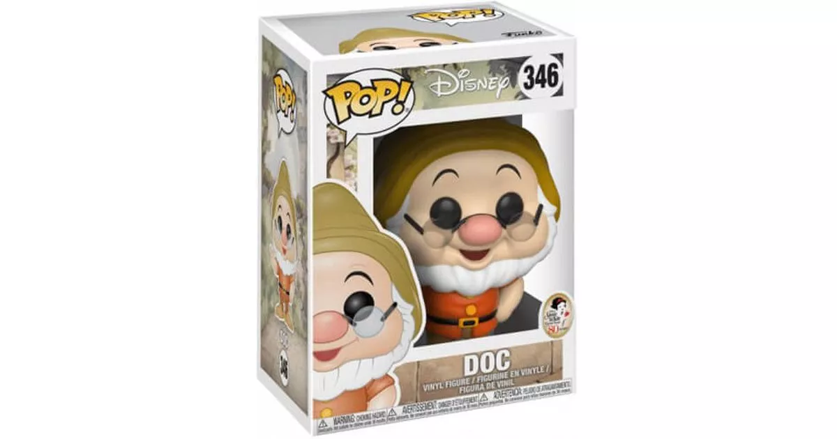 Doc is one of the seven dwarves of the cartoon Snow White and the Seven Dwarves of Disney. The animated film is inspired by the Grimm brothers' tale. In this story, Princess Snow White lives with her mother-in-law but has to flee into the forest. Indeed, the very narcissistic Queen has ordered her death when her magic mirror reveals to her that the most beautiful of the kingdom is Princess Snow White. In her flight, Snow White takes refuge in a small thatched cottage with seven small beds. After tidying and cleaning the whole little house, she falls down from fatigue and lies down on three beds.This house is in fact inhabited by the seven dwarves who have left to work in the mine. When the clock strikes five o'clock, the dwarves go home singing and whistling. When they arrive home, they find the young Snow White lying in their beds. Awakened by the noise, Snow White discovers that the inhabitants are in fact dwarves and has fun guessing everyone's first name. She begins by guessing Prof, very happy and flattered.Physically, Doc is quite chubby, he has a short white beard. He is the only dwarf who wears glasses and is the leader of the whole gang. He is quite calm and wise, that's why he is listened to by everyone, except maybe Grumpy who does not accept his position. He is partially bald like some dwarves, he has brown eyes, a red nose and looks a bit like Happy.On this Pop! figure Funko represented the leader of the dwarf group. You can recognize the outfit he wears in the cartoon: a red/orange uniform with yellow buttons and a black belt with gold buckles matching the buttons. He is also wearing brown pants and shoes of the same color. Funko represents the character with the physical features that characterize him like his rather round face, his big red nose and his smile. We can also recognize his round glasses without circles that give him an intelligent and composed look. His eyebrows give him a happy look that reminds us of Joyful. He puts his left hand on his hip and he seems to count with his fingers on the other hand. Finally, let's not forget his beard and his brown hat that matches his shoes.