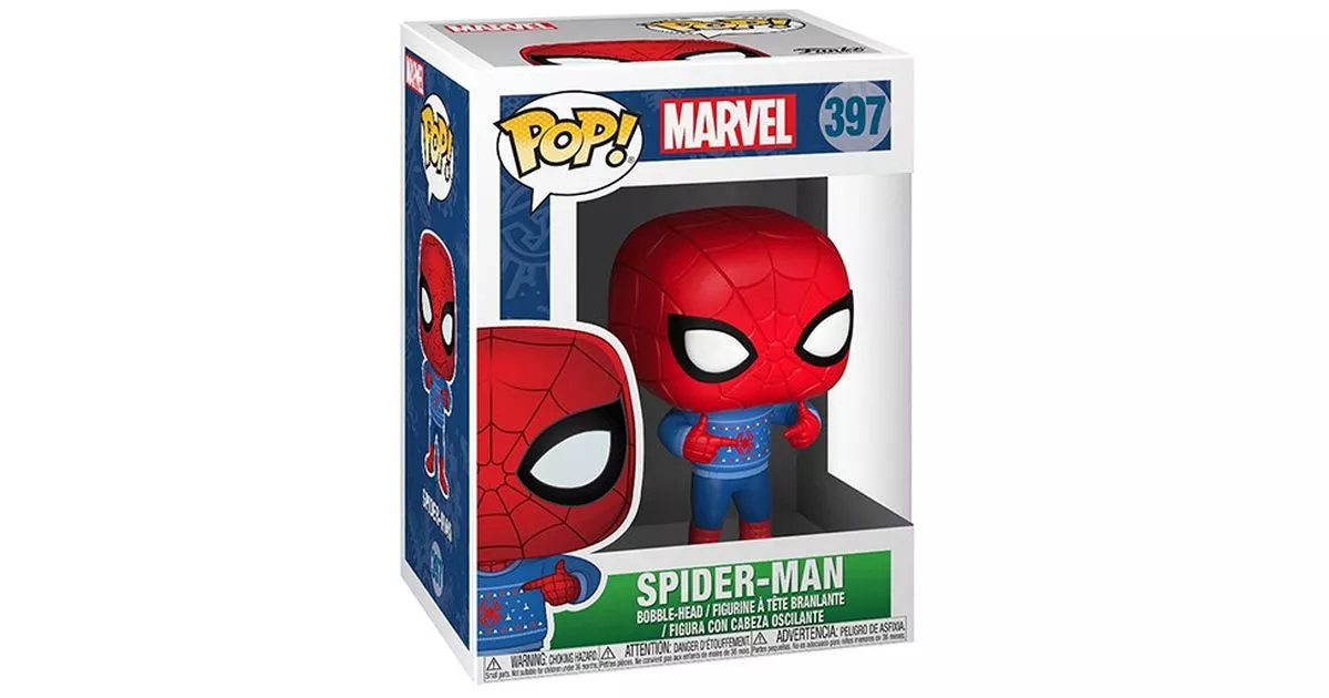 NIB POP MARVEL #397 SPIDER-MAN HOLIDAY UGLY CHRISTMAS SWEATER VINYL COLLECTIBLE