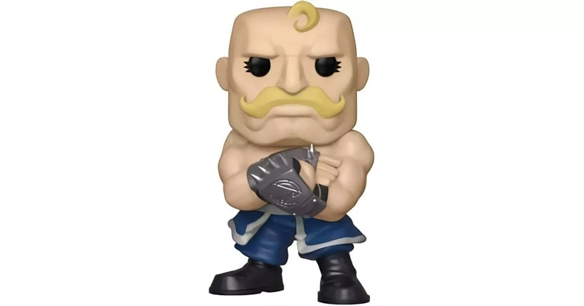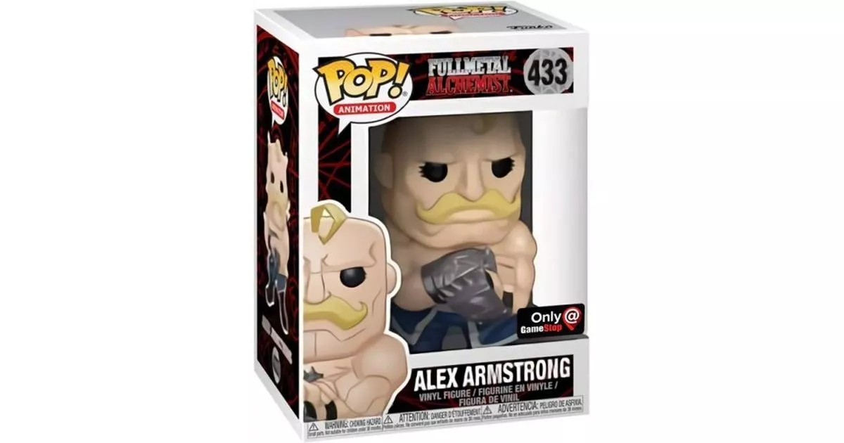 In Central City, we find eccentric and atypical personalities, those amassed in the ranks of the army. Major Alex Armstrong is one of these colorful characters and especially, high in size. One notices it very quickly, Major Armstrong is of a monstrous stature. With a height of nearly two meters, the man presents himself with muscles swollen and chiseled from the models of Greek gods. His huge, bushy, blond mustache, in addition to being remarkably combed, draws attention to it, only to distract from his shiny, hairless skull from which only a small blond lock protrudes.Major Armstrong serves in Central City under Colonel Roy Mustang. Everyone knows Alex Armstrong as a man who can be counted on, but who is sometimes far too considerate. Despite his dozens of pounds of bulging muscle, Major Alex Armstrong is not a tough guy. At least, not outside of combat...Indeed, he attaches himself very easily to people and shows an overflowing and suffocating affection towards those he loves: these being very numerous! His affection is literally suffocating in the sense that he hugs the people he likes to the point of taking their breath away. Edward Elric fears Alex Armstrong in particular, who hugs him excessively and behaves with him like a mother with her child.Major Armstrong's sensitive personality, before the events of Fullmetal Alchemist, had been severely tested by the Ishvald civil war. A bloody conflict in which tens of thousands of innocent people lost their lives. In despair, he cried out in anger amidst the ruins as he held the body of a dead child. He who had joined the army to serve would suffer from this deplorable episode. What, thereafter, will only incite him better to launch out in the internal conflict of the army after the plots were revealed one after the other. An unwavering ally of the Elric brothers, he'll go so far as to fight alongside his sister, the icy Olivia Mira Armstrong, in order to defeat the Homunculus Sloth, capable of surpassing the Major's demented power.The Alex Armstrong POP figure shows him in his military uniform. Or at least, only a part of it. Indeed, Major Alex Armstrong is represented shirtless on this POP, all his muscles ostensibly displayed. This is because, as an accomplished bodybuilder, the major loves to show off his massive muscles.So Major Alex Armstrong's Funko POP shows him in a martial stance, ready to fight, in a posture that relates to the boxing he uses in his fights. Naturally, his alchemist power is exercised from a medium. Therefore, Funko did not omit to represent the brass knuckles from which he delivers blows of inordinate power, earning him his rank in the Central City army.Finally, as a nod to this friendly Fullmetal Alchemist character, the POP figure of Major Alex Armstrong would not be true to the original without his long eyelashes giving the character a grotesque yet endearing look.