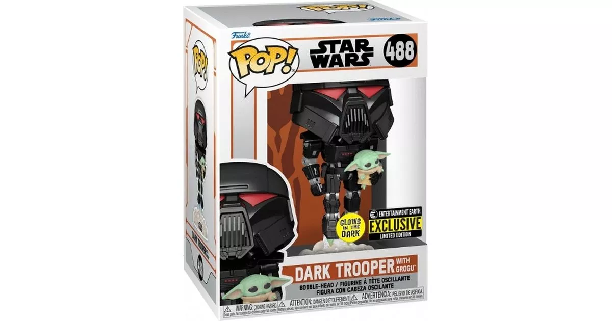 Funko Pop! Mandalorian Dark Trooper with Grogu glow in dark #488 Bobble-head