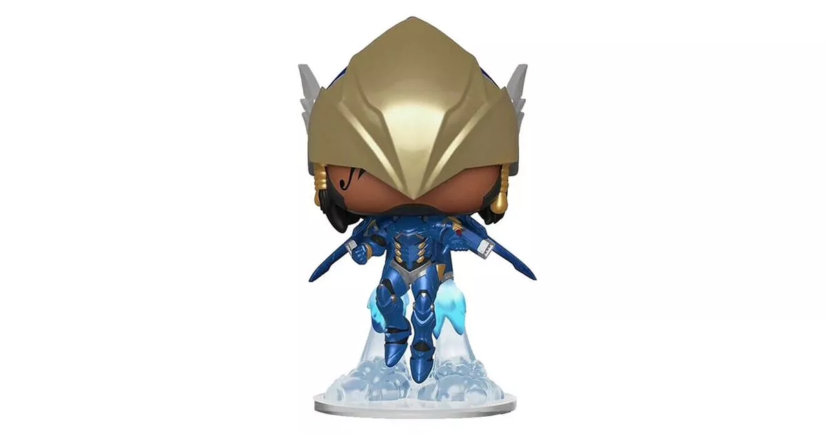 Character of the game Overwatch, Pharah is the code name of Fariha Amari. This young woman, whose slogan is "I will protect the innocent" has strong convictions and sacrifices her life in the service of good. It must be said that since childhood, little Fariha has dreamed of only one thing: to join the prestigious ranks of Overwatch agents.Coming from a family of highly decorated Egyptian soldiers, she naturally began a career in the Egyptian army. A model soldier, she rose through the ranks, demonstrating exemplary behavior and results.She decides to leave the army some time after the dismantling of Overwatch, realizing that she must put this dream behind her... Seduced by the mission of protecting a sensitive site under the Giza plateau, she agrees to join a private security organization. For her protection mission, she is equipped with the Raptora, a motorized armor that gives her exceptional mobility and strength.From a game point of view, Pharah is a damage hero. Her strengths lie in her mobility and weapons, including her rocket launcher. She is able to propel herself through the air and fire hundreds of rockets at her enemies, causing them significant damage...Pharah's Overwatch pop features the heroine of Overwatch in her victory pose, soaring through the turbo-jet engines of her armor. The miniature is very complete and the movement effect is particularly well done.We recognize the young woman with unmistakable details, including her small tattoo that remains partly visible under her golden helmet and the braids in her hair. Funko also did not omit any detail on the Raptora model VI. We discover a metallic blue armor with touches of gray and gold that propels Pharah in the air.In take-off position, Pharah has both arms outstretched and legs bent. His helmet in the shape of an eagle, with its small wings at the back, also gives a very successful rendering!