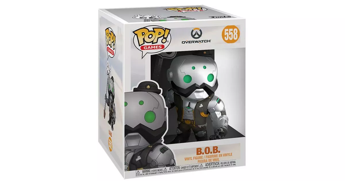 B.O.B which is the acronym for Big Omniac Butler, which is a testament to BOB's status as butler, in charge of Ashe as a child. In reality, his name is more like Big Omnia Bodyguard since BOB now runs when Ashe faces difficulties in propelling the enemies and getting her protégée to safety.He's also a playable character in Overwatch, Blizzard's FPS, and is an active member of the Deadlocks gang operating in Arizona. In the game, BOB can take a lot of damage, but he also has powerful weapons with his cannon-armed arms!The story of B.O.B. is therefore closely linked to that of his young mistress Ashe. Ashe's parents have entrusted the education of their daughter to this omniac, too busy with their business. While Ashe belonged to a well-to-do family, she sinks into crime until she founds the Deadlocks gang and becomes one of the most wanted criminals. BOB followed Ashe, and after a few modifications to his equipment, became a real war machine.B.O.B's POP action figure is like the omniac: a super-costaud robot with a look straight out of a western. Indeed, if BOB is entirely a metallic robot, he is dressed in some cowboy clothes: a vest, pants, riding boots, not to mention a hat that looks tiny on the head of the huge omniac!BOB's face on the POP is very well done. We can see the light of his "eyes" and the most surprising is a black metallic protection that seems to draw a moustache on the robot's face. In the same style, grooves on his armor give the impression that he has abs. All these details contribute to give BOB an even more humanoid appearance.Finally, Funko pays homage to the "thick brute" that is B.O.B. by representing him on a figurine where he holds in his hand a Route 66 sign that he just ripped off the ground without any difficulty. A very successful effect for this POP.