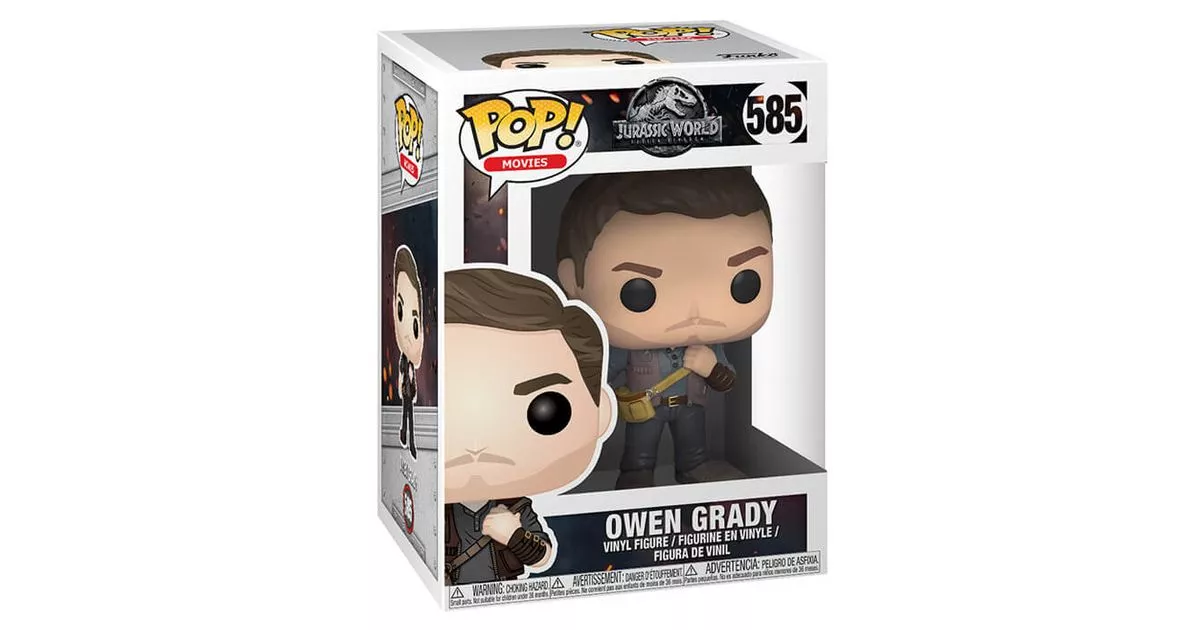 Owen Grady is one of the main characters of Jurassic World. He is employed at the park and is in charge of studying the behaviour of dinosaurs with the aim of "training" the velociraptors that he loves like his children.Between a bad boy and an angelic face, Owen Grady is a complex character with a strong character but who does not deviate from the rule of following his convictions and living his life as he sees fit. A former soldier in the Navy, Owen combines physical abilities with a real knowledge of dinosaurs - a passion he developed as a child during a visit to a dig led by Alan Grant.With Bary (played by Omar Sy), Grady spends much of his time training four velociraptors: Blue, Charlie, Delta and Echo. He cherishes these dinosaurs as loved ones with whom he is the first to be able to interact and be understood or obeyed. Unfortunately, his work is of interest to military organizations who see a better opportunity to use dinosaurs as weapons rather than as attractions in a theme park. This is what will lead in part to the cataclysm that occurs in Jurassic World.While Owen Grady sincerely loves dinosaurs, he is not convinced that they are meant to live with humans, and he is even less appreciative of some of the experiments conducted by the park. So it's only natural that he doesn't like the new attraction: a dinosaur that was 100% invented from the DNA of other dinosaurs and never existed, the indominus rex. Owen is in charge of controlling the security of his enclosure when he realizes that the Indominus rex has developed the ability to hide in order to orchestrate its escape and spread panic in the park...As for his personal life, we don't know much about Owen Grady except that he had a rather tumultuous relationship with Claire Dearing, the director of operations of Jurassic World. Jurassic's exceptional adventures will once again bring the two lovebirds together, but their strong characters may also keep them apart.Owen Grady's POP action figure is just like the character: a "bad boy" on the border between an adventurer and a modern cowboy. Performed by actor Chris Pratt, the POP takes on the features of the actor. So we find a figurine with the look of an explorer where Owen wears a small blue shirt, a reporter vest which is practical because sleeveless and with many pockets, his dark grey explorer pants held by a belt. On the accessories side, Owen Grady's Jurassic World figurine includes the yellow bag worn across the shoulder and a leather protection bracelet that Owen wears on his left forearm. Finally, the actor is perfectly recognizable with his 3-day beard and his light goatee. His chestnut hair perfectly coiffed in a "slightly tousled" style makes the charm of Owen Grady.