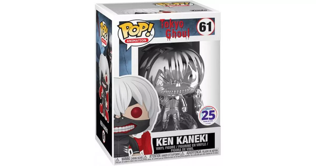 Ken Kaneki is the main protagonist of the manga and anime series Tokyo Ghoul and Tokyo Ghoul:re. He is a young student passionate about literature who studies Japanese Literature at Kamii University. He lived a peaceful life of young student until one day he is attacked by a ghoul. The ghoul pierces his abdomen and hits his vital organs. Fortunately for him, metal beams fall on the ghoul and kill it instantly. Ken, is then brought in a critical state to the hospital in which the doctors decide to transplant the ghoul's organs to save him.A few days after the operation, Ken realizes that he has become a half ghoul. He doesn't accept this immediately, forcing himself to eat human food and then vomiting it. For Ken, the fact of becoming a ghoul and thus having to eat humans was inconceivable, he who was a discreet and shy boy wanting the good of all the people who surround him. Afterwards, he will meet Touka Kirishima, a ghoul with whom he will work in a café managed by ghouls: The Antique, where he will learn to live and eat as a ghoul without killing anyone.As for Ken's physical abilities as a ghoul, he is naturally stronger than a normal ghoul. Indeed, he is both ghoul and human which gives him much more powerful abilities. Ken is endowed with superhuman strength, extraordinary speed that doesn't let his enemies follow his movements when he fights, as well as an immense resistance to pain, he is able to twist and break his limbs to escape his enemies. In addition to these physical skills, Ken can also use his kagunes as a weapon to attack or defend himself. These kagunes are powerful red tentacles that come from his back.On this POP figure, Funko presents the main character of the manga and the Japanese anime series Tokyo Ghoul, Ken Kaneki. We can see Ken with half-long white hair and his famous leather ghoul mask that hides his human eye. On this mask we can also see a sly smile closed by a zipper at the level of the teeth, giving him an even more terrifying look. Kaneki is dressed in a black jacket and shorts. His four kagunes are out showing that he is ready to attack. Ken also cracks his fingers on this POP meaning that he is about to get serious. This tic comes from his former opponent, the famous ghoul of the 13th district, Jason. This POP is special, it is made of silver chrome, giving this figure a more aesthetic and shiny look, which will please all collectors of the Tokyo Ghoul saga POP.