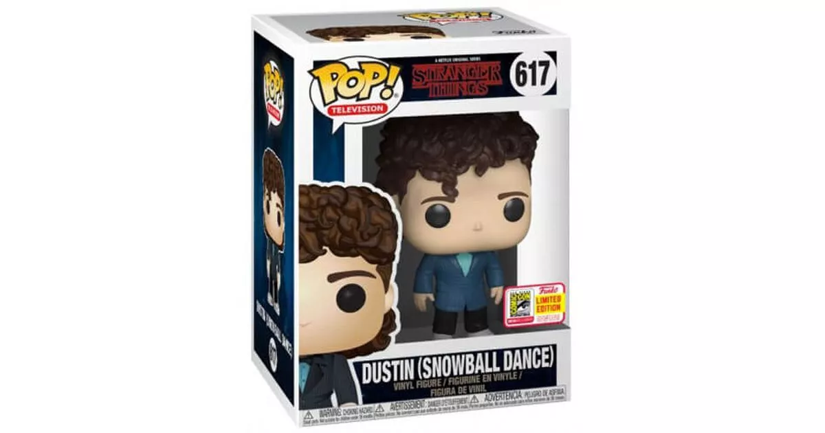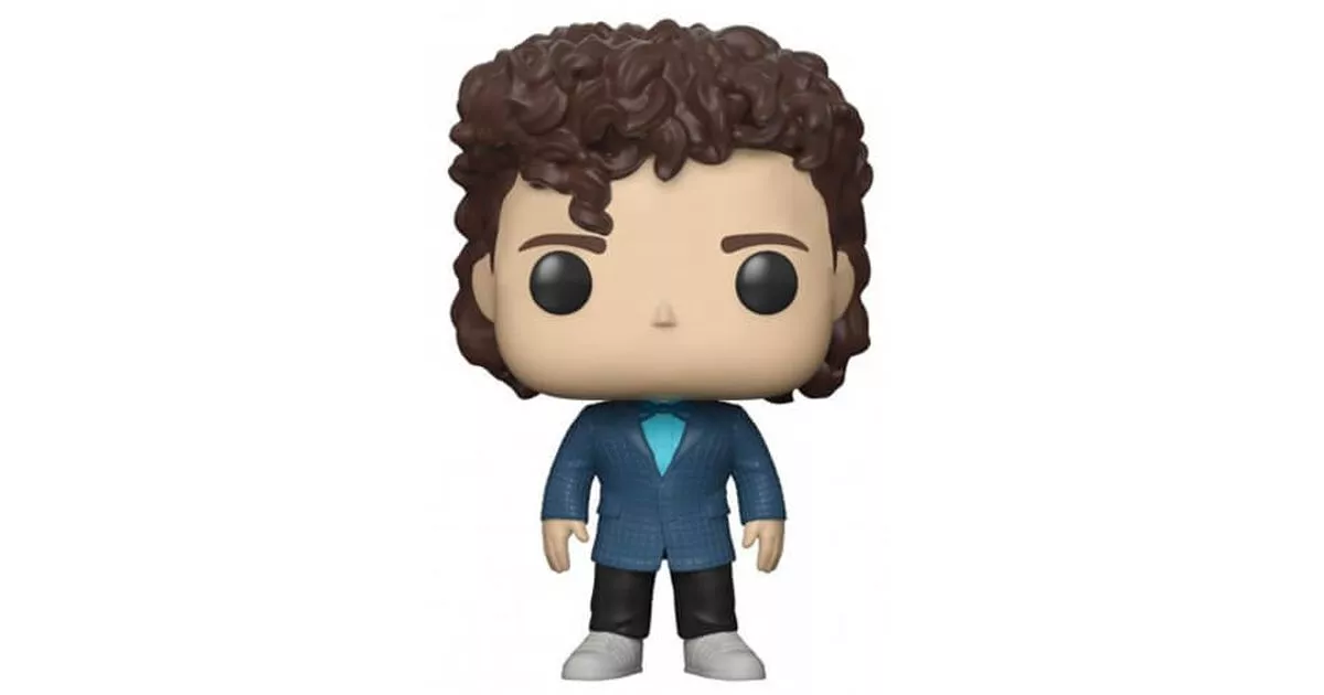 Dustin is one of the four friends of the band in Stranger Things. Involved in the investigation to find his friend Will during the first season, he is even more omnipresent in season 2 because his life is particularly turned upside down.First of all because Dustin finds and collects Dart, a small creature that will turn out to be a mini Demogorgon and gives Dustin a lot of trouble as Dart will become more and more uncontrollable and dangerous.On the other hand because Dustin's sentimental life is also turned upside down. He falls under the charm of Max, the school's new girl, but is confronted with two problems: he is very indelicate in his approach, and his friend Lucas is also in love with the girl...Funko proposes a POP of Dustin from the end of season 2 of Stranger Things while the college is organizing its prom. Things are more or less back to normal: the monster has been pushed back, the Demo dogs burned and Eleven has closed the breach of the world upside down in the lab, so it's perfect for the 4 boys still at the center of these plots to have a little fun!For the occasion, Dustin made himself beautiful by following the advice of his mentor in seduction Steve, the high school playboy. On the figurine, Dustin is dressed in a blue plaid suit jacket. He is also wearing a turquoise shirt, bow tie, black pants and white sneakers.On Steve's advice, Dustin not only bet on his look to seduce Max, but also on his hairstyle. He curled his hair and used a ton of hairspray to set the curls, especially with a lock that fell on his forehead. The scene of his appearance marked the end of season 2 of Stranger Things and Funko winked at this moment of anthology.