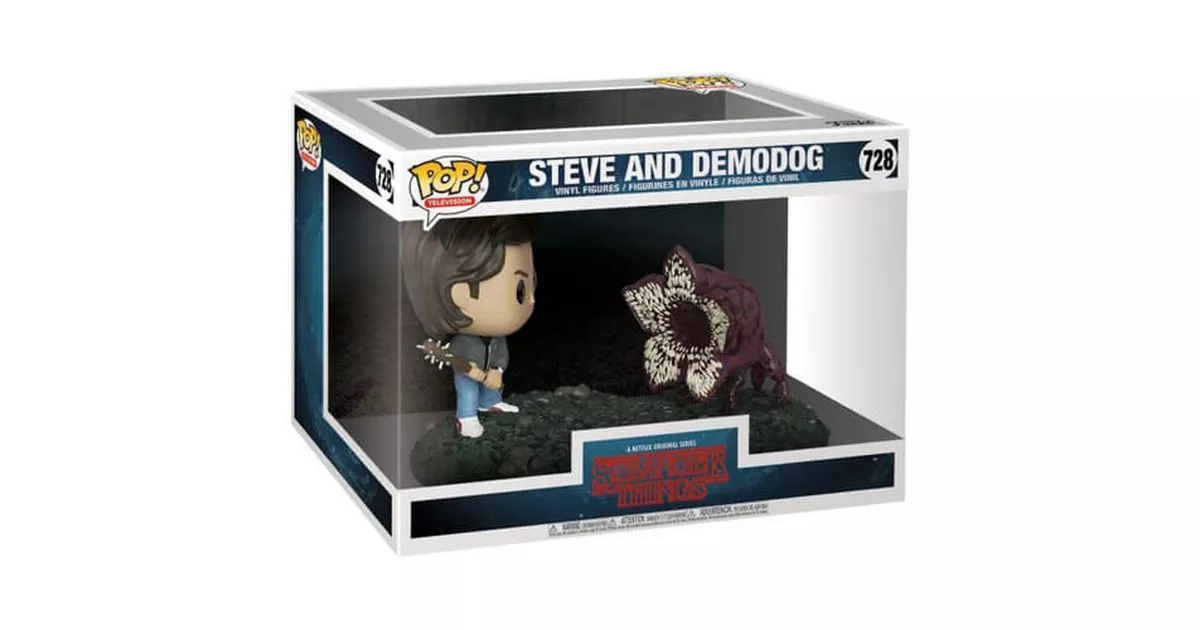 Steve is one of the main characters of Stranger Things. In the first season, he goes out with Nancy Wheeler and is the "playboy" of the high school. If the character seems rather light at the beginning, Steve Harrington takes a more and more important place in the series and finally shows himself to be a much deeper character.During the first season, Steve is involved in the plot against his will and has to face the Demogorgon in the Byers' house. He makes himself a bat with nails to confront him, but will not be able to cope with the creature although he, Nancy and Jonathan will manage to defeat the retreating Demogorgon...While the events of the first season seem to be behind him, Steve will once again be involved in a battle against the creatures of the world upside down in spite of himself. This time, it is Dustin who calls the young man for help when he loses control of Dart: a mini Demogorgon he has collected.Steve, brave, agrees to help the boy and they are about to lure the monster to the dump to capture him. It is from this scene that Steve's POP Movie Moment versus the Demodog is taken. This figurine reminds us of the first season where we found a POP Movie Moment of Eleven's fight against the Demogorgon.So Funko offers a POP where we find Steve in the middle of a fight against one of the creatures named Demodog (in reference to the cross between a dog and the Demogorgon). Steve is dressed in his everyday clothes, recalling the style of the 80's with his jeans and his bomber. He holds in his hand the famous bat made during the first season of Stranger Things with the nails stuck in it.In front of him stands an aggressive creature. The Demodog is standing on his four legs, ready to pounce on the young man. He has his petal-shaped mouth open and you can see the hundreds of sharp teeth on the petals.This movie moment takes one of the most striking scenes of the second season and will find a place of choice in the middle of your POP Stranger Things!