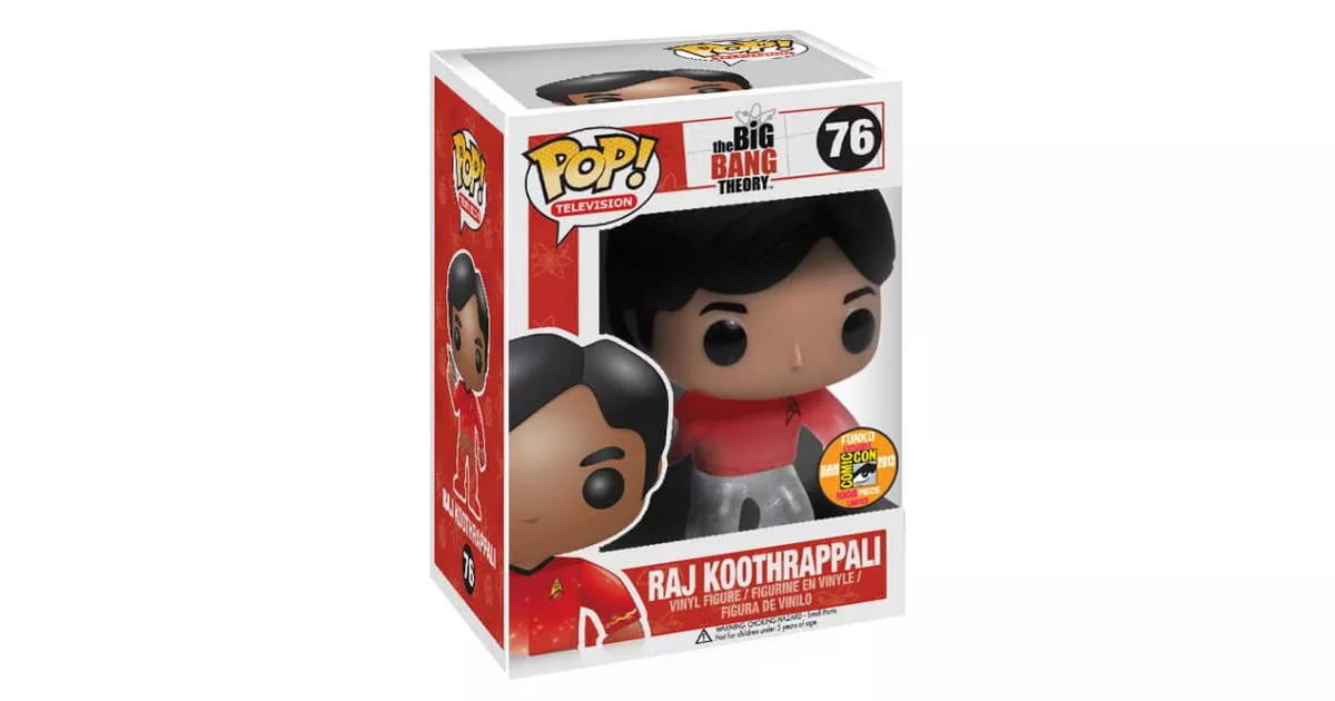 Raj is one of the science geeks from The Big Bang Theory series. Rajesh, is of Indian origin but does not eat Indian food. He is a gifted astrophysicist who works at the University of Caltech in Pasadena. He spends a lot of time with his friends and colleagues Sheldon, Leonard, Howard with whom he shares a passion for the world of comics and superheroes. He has a rather fusional relationship with his best friend Howard, sometimes confused with a love relationship. This relationship will be one of the comic sides of the show.Raj has a strong English Indian accent and he has the particularity of being very shy, which makes him unable to talk to women. When he discovers that alcohol makes him uninhibited, he is able to converse a little longer with women, except that he becomes rude.In this special Pop! action figure, Funko depicts Raj in a red Star Trek uniform, representing members of security. This is an exclusive version of an existing figurine where Raj is shown wearing black pants, a red long-sleeved t-shirt with gold stripes and holding a gun in his right hand. On the t-shirt is the golden symbol of the starship Enterprise. This figurine is different from the classic version because Raj is partially transparent on his lower body and on his hands to teleport. You will also find the "teleportation" version of the other three scientists in this special collection!