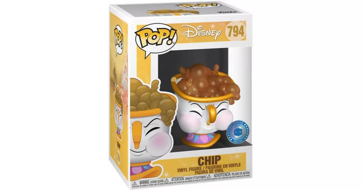 Zip is the little chipped mug in the cartoon The Beauty and the Beast, the thirtieth great Disney studio classic. It is one of the enchanted objects of the castle of the Beast. At the beginning of the film, one winter evening, the prince of the castle, handsome, proud and selfish, refuses hospitality to an old woman who has come to seek shelter in exchange for a rose. This old woman is in fact an enchanting creature who turns the young prince into a monstrous creature. She also casts a spell on the castle and all its inhabitants. This is how Zip, the housekeeper's little boy, turns into a teapot and a cup. Zip stands out from his siblings because of his mischievousness and good humour.For example, when he serves tea to Belle, he plays blowing with the handle that serves as his nose to make the drink bubble to amuse the young woman. When Belle's father Maurice takes refuge in the Beast's castle, Zip serves her tea. He laughs when the old man's moustache tickles him. When Belle arrives at the castle to rescue her father, he rejoices and rushes to bring the good news to her mother. Mrs. Potts tells him that she hates lies and asks him to go to her bath. Plumette confirms the words of the young boy, who then says "you see, it's all right". His childlike and innocent character makes him a very touching and endearing character.For this Pop! Funko figurine Funko represents the little boy in the scene where he has fun bubbling tea in front of Belle. We recognize the adorable little cup chipped on the rim, eyes closed and cheeks swollen trying to make bubbles. The cup is white with a golden base colored with pink blue and purple patterns, matching the handle, also golden. The tea overflows from the cup and is full of bubbles on its surface. This adorable little face will make more than one crack!