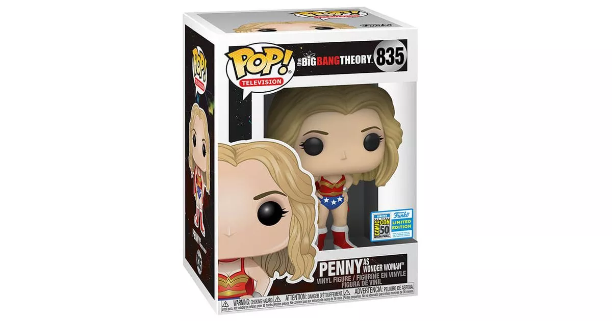 Penny is one of the main characters of The Big Bang Theory series. Penny is very extroverted and has a great social intelligence which contrasts with the rest of the gang. Originally from Nebraska, she moved to Los Angeles to become an actress, she works as a waitress at The Cheesecake Factory restaurant in the meantime. At the beginning of the series, she moves into the apartment opposite Leonard and Sheldon and Leonard's apartment which will soon fall under the charm. In spite of their different worlds, Penny integrates well into the group and a strong friendship will be formed between her and the scientists. She will even get caught up in the evening deliriums disguised as superheroes, like the Halloween party at the comic book store.In this Pop! figurine, Funko represents Penny in her traditional Wonder Woman costume. Indeed, Penny wears a red bustier with gold stripes at the neckline, matching the belt. She wears a blue stocking with white stars reminiscent of the American flag. Finally, she is represented with red boots with white stripes and a red cape. On this figurine, Penny poses like a superhero, her hands on her hips and holds in her right hand the lasso of truth.