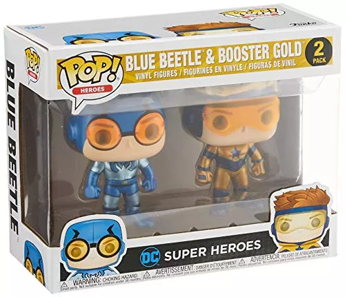 This DC Blue Beetle & Booster Gold Metallic 2 Pack EXC Pop! Vinyl Figures measures about 3 3/4 inches tall and the two figures come packaged in a window display box, please note images shown are artwork and final product produced may vary. This is perfect for any Funko fan or fan of DC Comics.