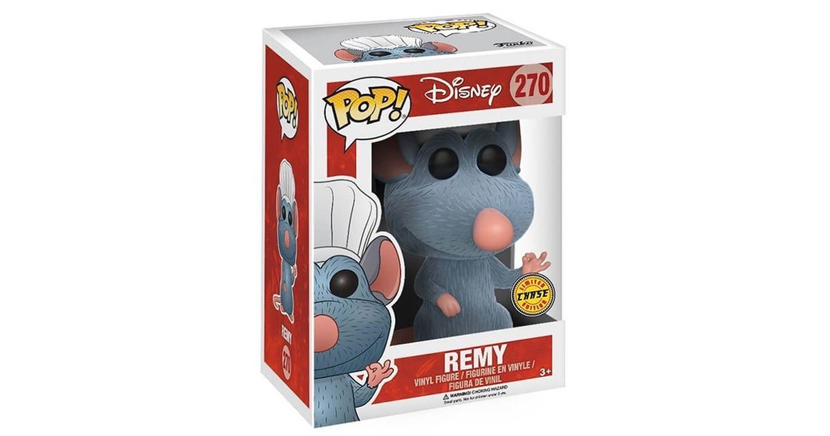 Remy is one of the main characters in Pixar Ratatouille's animated film. This little rat, a lover of great French cuisine, shares the headliner with Linguini, a young man somewhat lost in life and who is the hidden son of the great chef Gusteau!Remy is a unique rat. He walks on his hind legs so as not to dirty his front paws, with which he cooks. He has learned to read in order to decipher the recipes in the cookbook published by Gusteau, and his over-developed sense of smell and palate allow him to create magnificent recipes.When he was accidentally propelled to Paris, Remy found himself in front of his idol's restaurant "Chez Gusteau". Driven by his curiosity, he enters the kitchens and admires the brigade in full swing. Unfortunately, he is captured and Linguini has the mission to get rid of him far from the restaurant ...Fortunately, the two protagonists quickly become friends, sharing a common interest: Remy knows how to cook but is limited by his condition as a rat, Linguini knows nothing about cooking but he is a man ...From there the unlikely duo is born. Remy now hides under Linguini's hat and guides him in the elaboration of wonderful recipes that will bring the fiercest culinary critic, Ego, to childhood with a dish that will later become the name of their restaurant: La Ratatouille.With this POP figurine by Remy, Funko pays a beautiful tribute to the Disney Ratatouille. We find the little rat as he is in the animated film with his mischievous look and sparkling eyes every time he thinks of cooking or Gusteau.On this figurine, Remy is standing on his hind legs, as he is used to do in order to preserve his clean hands. He wears a broad smile and makes a hand gesture as if he seems to be saying that everything is OK, unless he is adding a pinch of salt to add the final touch to his dish!As for the accessories, this POP is quite simple since Remy doesn't wear any clothes. Nevertheless Funko made a nice wink to the "little chef", as Linguini nicknamed him, by presenting him with a mini chef's hat on his head.Note: this figurine is a flocked version of Remy's Chase. The texture is reminiscent of the hair of the little rat. A very nice POP for all those who loved Ratatouille.